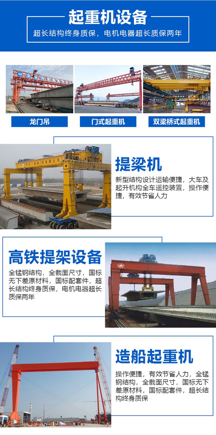 在铁路集装箱吊运方面也发挥着巨大的作用,大大提高了集装箱搬运效率,缩短了物资货运时间。我公司紧跟国家建设形势,不断提高研发能力,提高产品质量,生产的地铁渣土门机 、铁路集装箱门机、架桥机、移梁机等轨道交通起重机畅销国内外,获得客户一致好评。